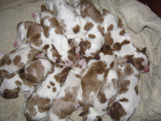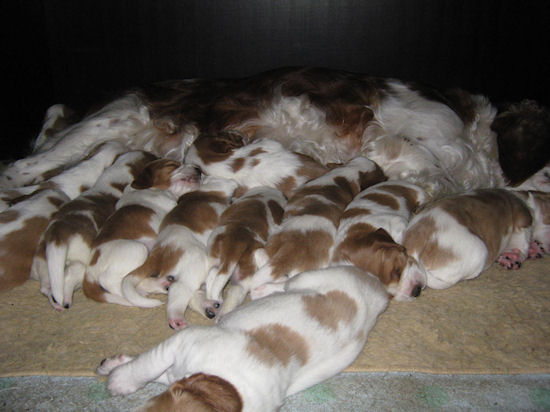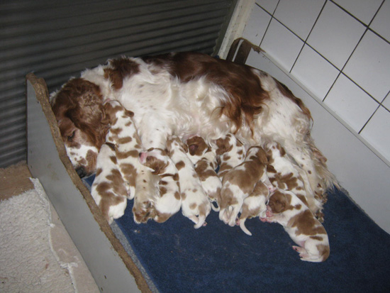 around the same time? 4-4-2011 Congratulations to Nora and Gerald by making up American Champion Tommy Our Loyal Welsh. A big hug from his mother Tracey who is especting her second litter in the start of may. First we are waiting for Rientje,her puppys will come in 14 days, perhaps earlier, she is so heavy. Was yesterday at the coast with great area to work Spaniels. Had Jayne and her 2 daughters, Silke and Wingi with me, it was wonderfull to see that both daughters (from different fathers), show so much huntingcapabilities, feels good. 17-4-2011 Born last night 5 sons and 3 daughters for Arizona Rhiannon Our Loyal Welsh x My Welsh I Can Do It, Rientje and kids are fine. 22-4-2011