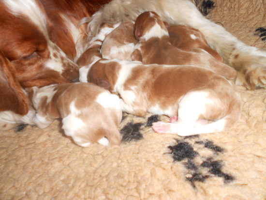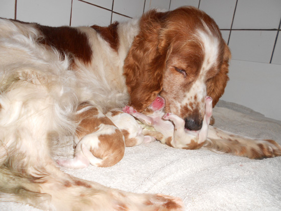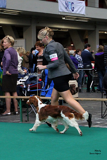 succeeded to get the diplome of the "Uithoudingsvermogentest" 27-5-2012 Arnhem Xanthos 3 Very Good Youthclass 3-6-2012 Huntingdogshow Bennekom Xanthos 3 Excellent Youthclass 7-6-2012 The puppies from Jayne and Cari are "flying"out at the moment. There is still a puppybitch from Cari available. 8-6-2012 Brodie "back home"in the house of his father The "deepfreeze"litter of the late American Champion Royailes A Cut Above and Dutch Ch. Jayne Our Loyal Welsh is "flying"out now. They were born the 28th of march. Brodie and Bleddyn are already in the USA, my heart was bleeding when I sent this beautiful puppymales but it comforts me knowing that a puppymale out of one of these boys will come back to the Netherlands to live with me.. Brian and Begley are living in Holand at hunters. And than the girls, Brighid will stay with me, Bree is living with a co-owner and will do her job in the field, Blodyn will live in Holland and hopefully doing her job in the field, Bevan is still with me but will go next month back to the roots of our breed, Wales. Both, Nora and Gerald of the Royailes Kennel and I are thrilled with this beautiful litter from Goofy and Jayne and I hope they will be a tribute to their late father Goofy. With thanks to Jeffrey De Gier from the Vet. Faculty Utrecht for helping to make this combination. 9-6-2012 Show KC De Baronie Xanthos 3 Excellent in Youthclass 12-6-2012 Hipscore for Xanthos C 23-6-2012 Show Uden Xanthos 3 Very Good Ayla (Arizona Rhosyn Our Loyal Welsh x My Welsh I Can Do It), for the first time in a ring, Excellent in Youthclass. She did well together with Linda. she is 10 months now and developing in a very nice young girl with a friendly and stabile temperament. 27-6-2012 Ayla got her A-diplome for Obedience with honour. Well done girl! 2-7-2012Puppyteefje van Cari zoekt nog een baasje 6-7-2012 Zero Zottie (Border) got the B-diplome of Obedience. Well done! 2-08-2012 Royailes Tulip has been mated today by Dutch Ch. Eastfarm's Midnight Sun NJK'10, we espect their puppies around the 4th of october 8-8-2012 Cyntaf Carwyn Carwyn, youngest Welsh ever qualified on the fieldtrails and a Fieldtrailwinner lived the last 5 years with my mum after she came out of the nurseryhome. Bravely she always walked beside the "rollator", she took care of my mum day and night. We can say that she kept my mother alive for an "extra"5 years, we owe her a lot. On the day my mother died she was on the Intensive Care and she knew this was a goodbye. The last words of my mum were for her. Thank you Carwyn and welcome home 19-08-2012 Championclubmatch WSSC Almere Pipo (Xanthos) 4 Excellent Youthclass 22-08-2012 Today a very dear old friend died, Noel Hunton Morgans from the Dalatikennel. Many of you will know that I spent a lot of time in Llandovery, especially in the seventies. While Dodo was more the "educating"part, she really educated me in the breed, Noel took me everywhere and showed me every corner of Wales, the place he loved so much. I owe them both a lot. Noel, rest in peace 29-08-2012 Brighid got the puppycertificate from obedience 31-08-2012 Today an echo showed that Tulip is pregnant 16-9-2012 Eyeresults for; Tulip is growing and growing, still 19 days to go before we can welcome her puppies 19-09-2012 Official HD-result for Ayla is A 24-09-2012 Spaniel Club der Schweiz (together with Kooikerhondje and Barbets) held their Clubshow the 23th of september. Xenta Our Loyal Welsh in Youthclass - 1 Excellent, Jugend CAC and Jugendsieger, BOB and Clubwinner. That was not all. She became Best Spaniel of the day and in the end Best in Show! 1-10-2012 6 very big puppies for Royailes Tulip and Dutch Ch. Eastfarm's Midnight Sun NJK'10 7-10-2012 Show Zwolle Zero Zottie (Border) 4 Excellent in Youthclass